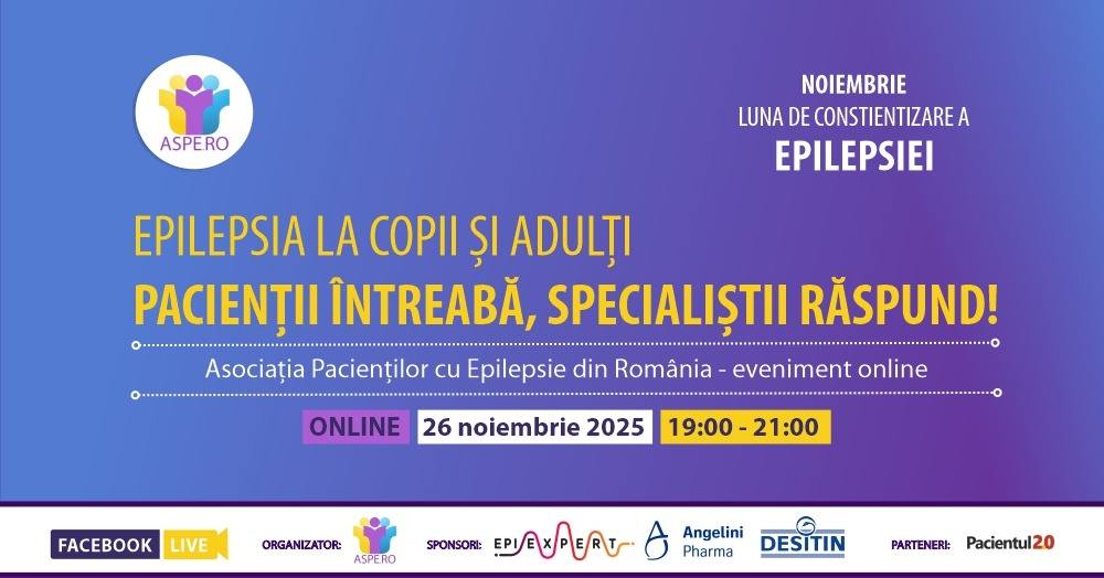 Ne bucurăm să putem organiza în luna noiembrie un eveniment care să răspundă intrebărilor tale de sănătate! Ne vor ajuta cu răspunsuri neurologi specilizați în epilepsie si psihologi de excepție